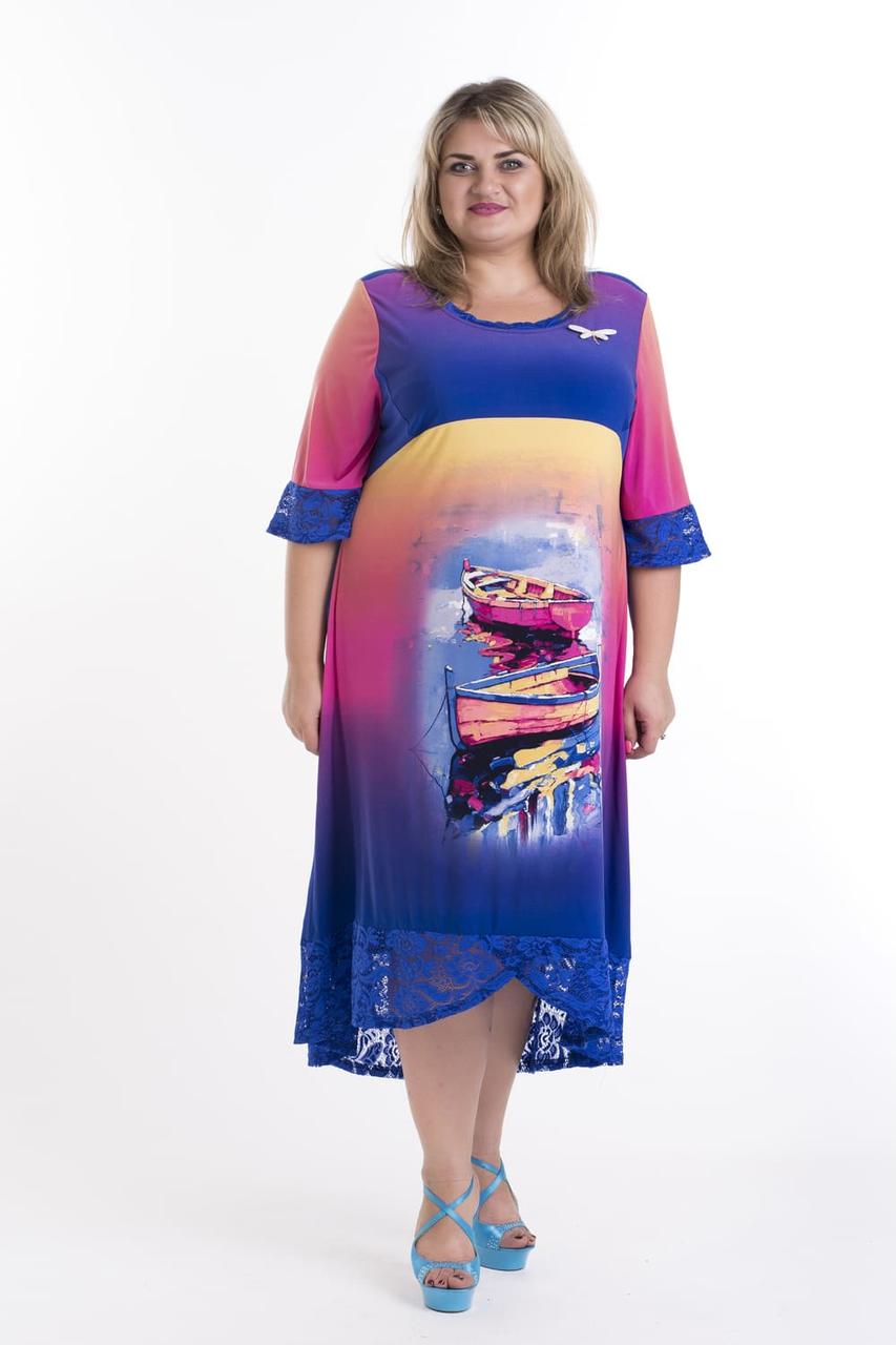 Яскрава стильна сукня "Причал" 62-64 66-68 з обробкой з гіпюра
