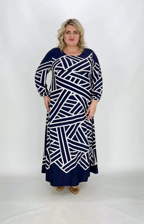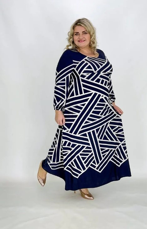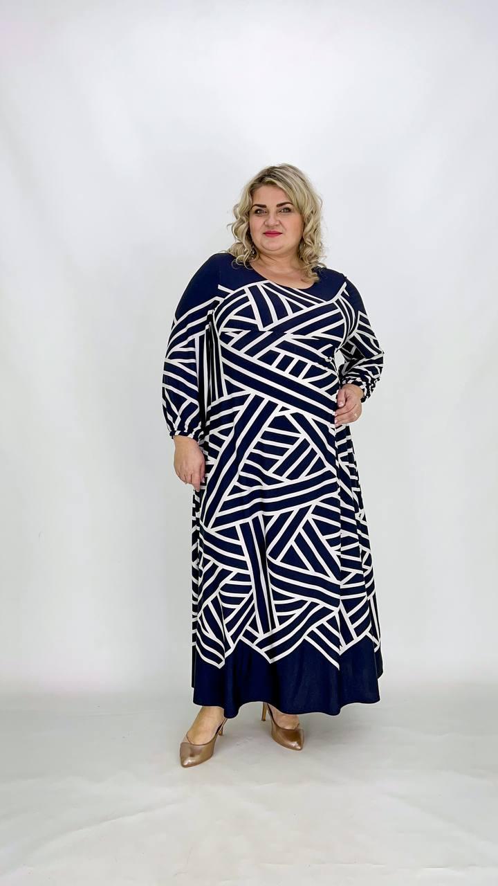 | Тип товару | Плаття жіноче трапеція довге "Магія" синьо-біле великі розміри 66-68; 70-72: 74-76 |