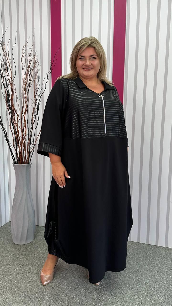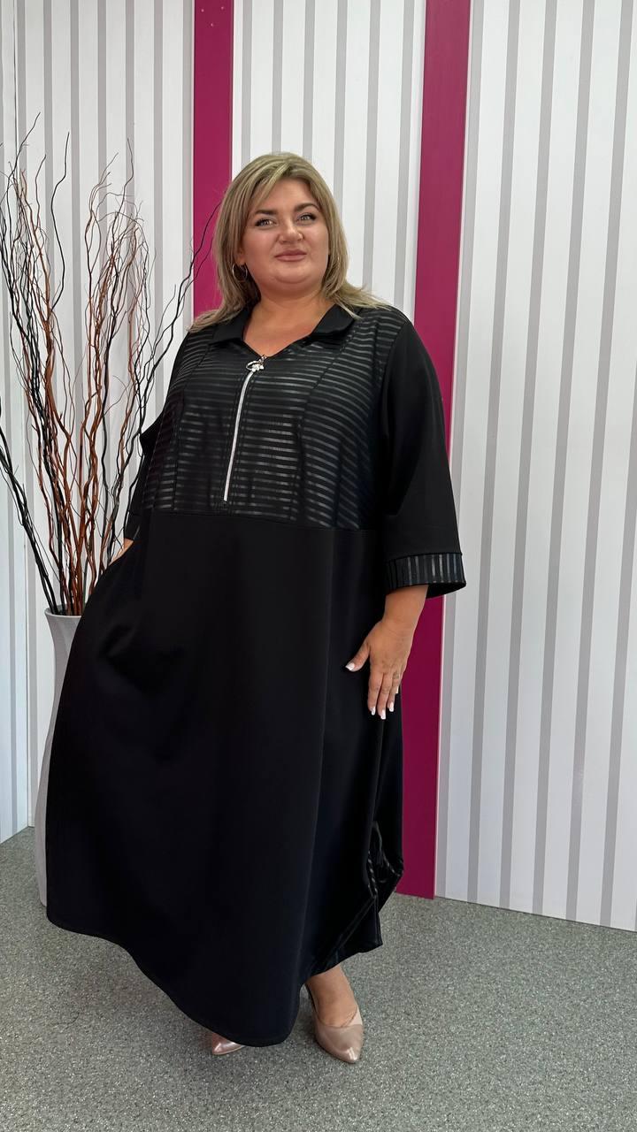 Стильне плаття з турецької двонитки якість спів-компакт з гарною розтяжністю комбіноване з оздоблювальною тканиною, не кашлатається. Фасон спорт-шик, силует трапеція, кишені в бічних швах, низ по боках підв'язаний шнурком. Рукав втачний 3/4 довжина, по горловині комір, функціональна змійка.