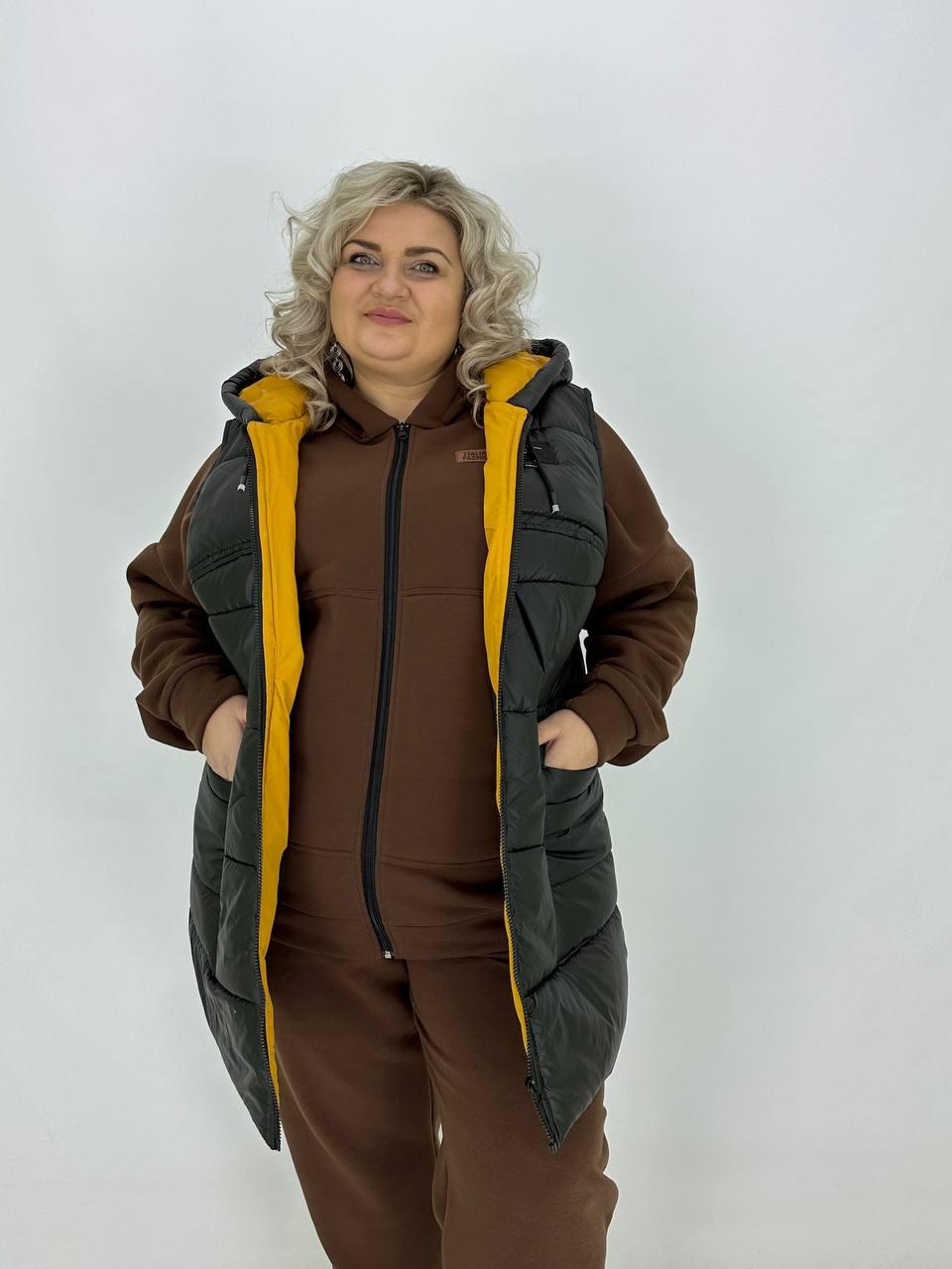 Теплий стьобаний жилет з плащової тканини "Людиця" 62-64 66-68 70-72